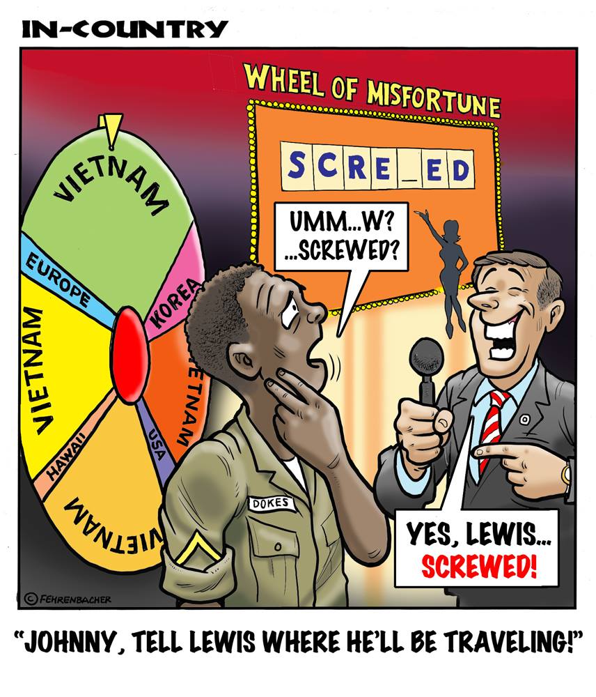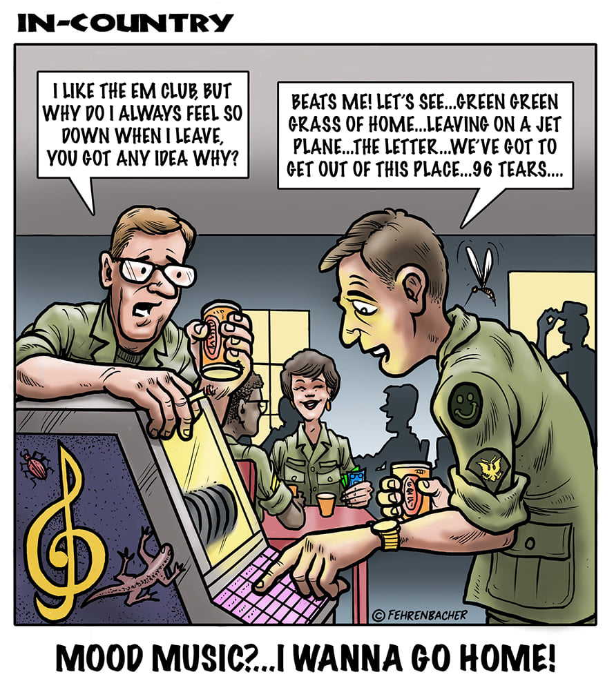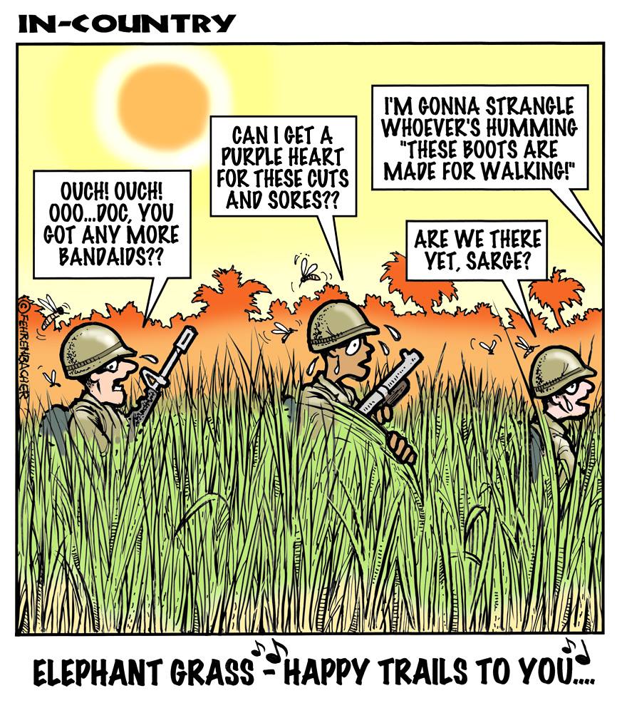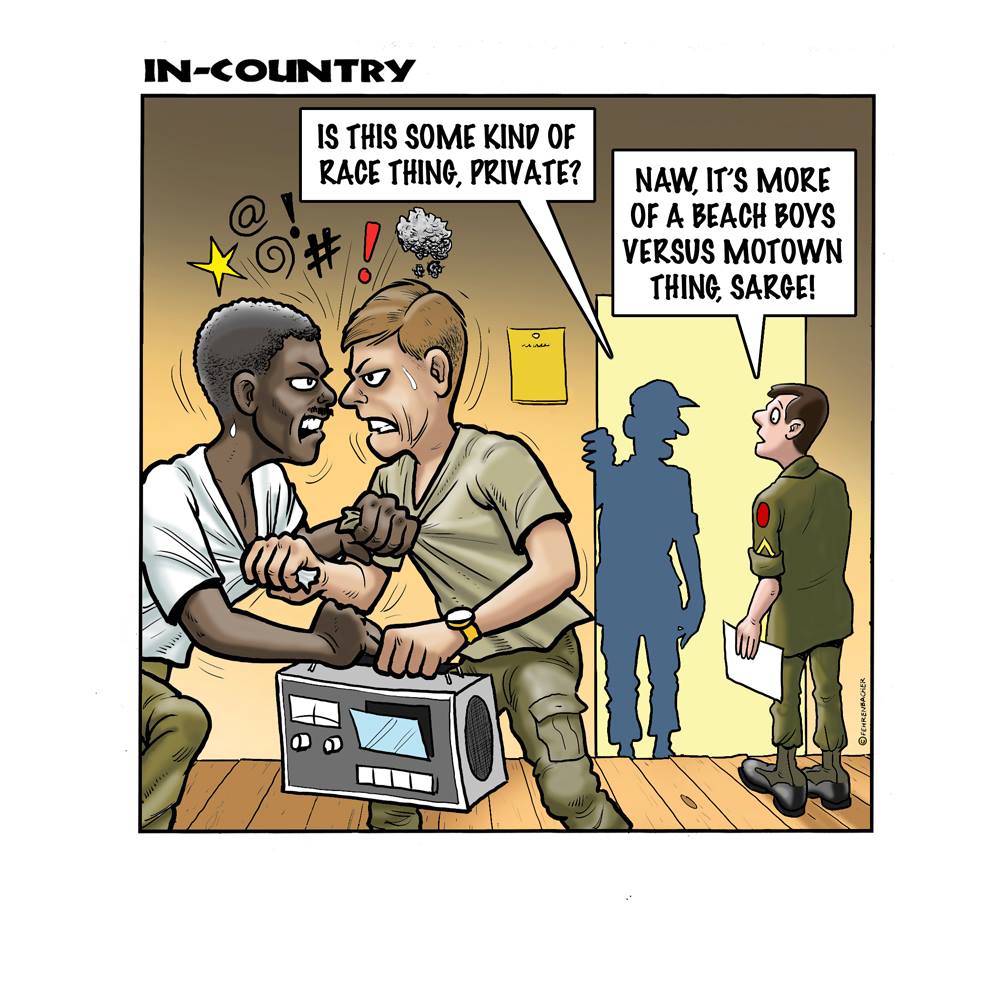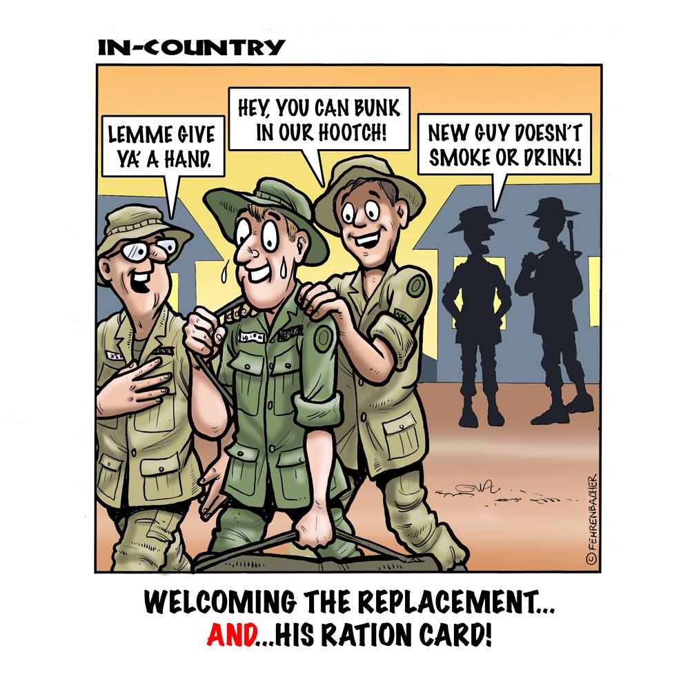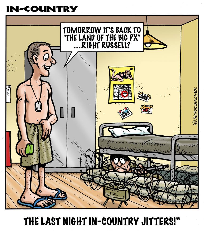 Phil enlisted in the Army in 1965 where you served for years in Vietnam. He became a graphic designer and has worked for the state of Oregon for 26 years. He retired in 2003 and started the Cartoon "In-Country". The cartoons reflect his experiences during his tour of duty in South Vietnam.