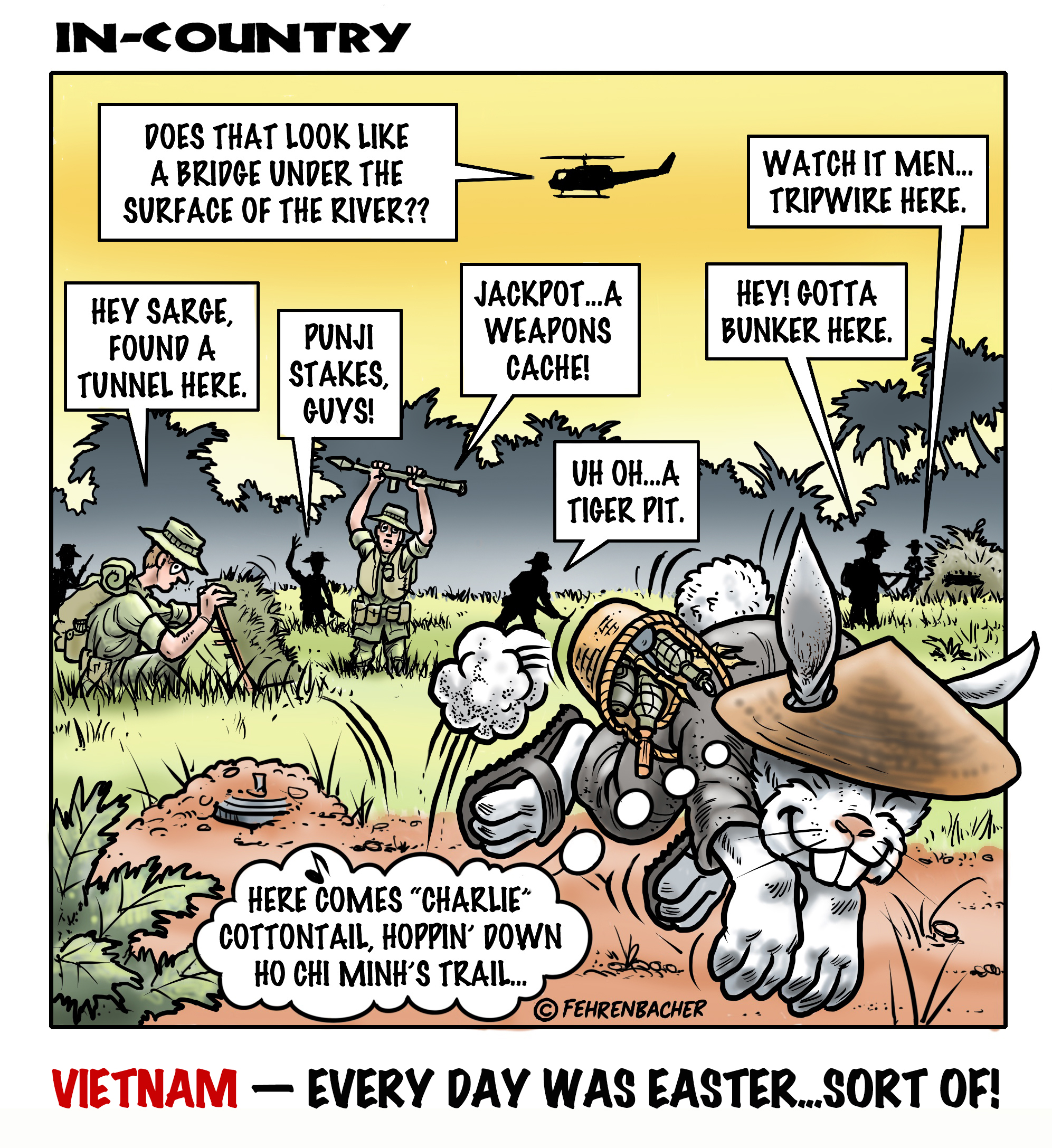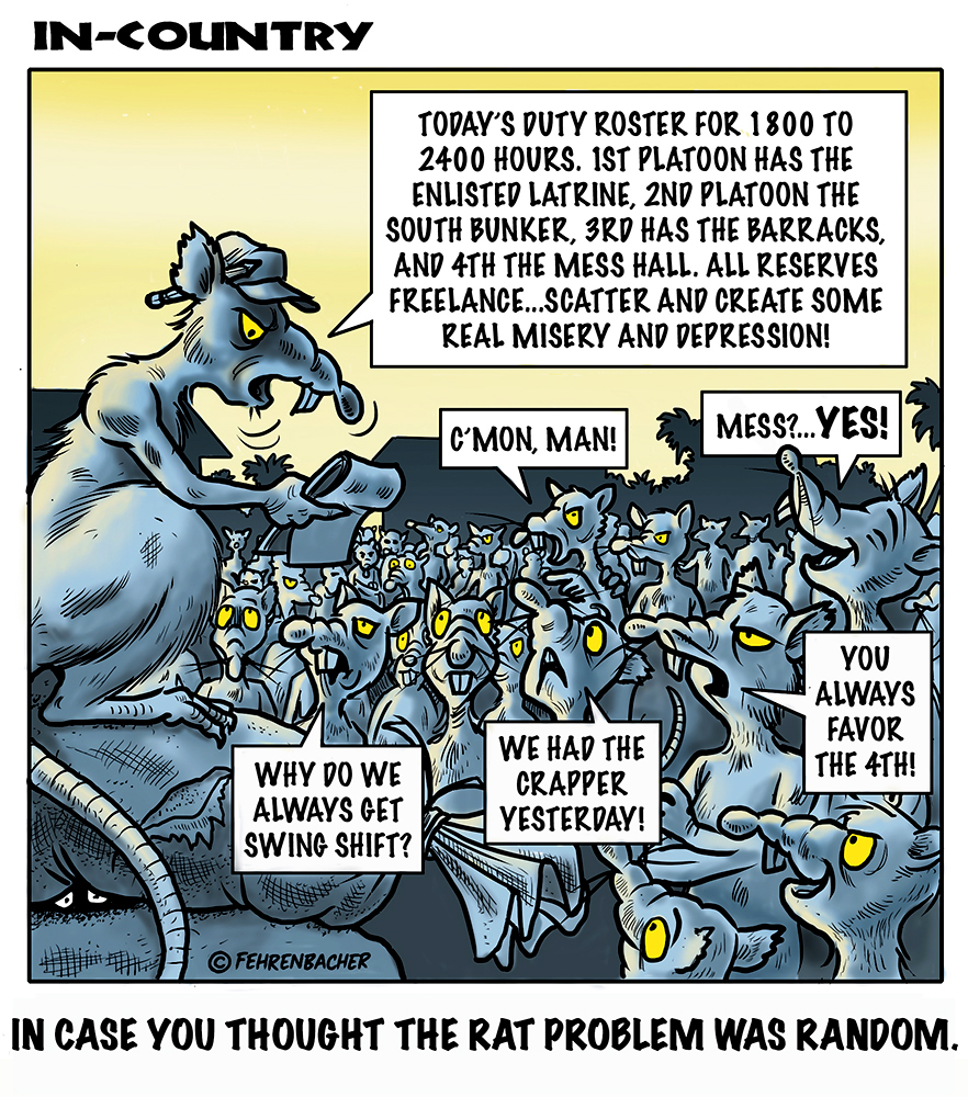 Phil enlisted in the Army in 1965 where you served for years in Vietnam. He became a graphic designer and has worked for the state of Oregon for 26 years. He retired in 2003 and started the Cartoon "In-Country". The cartoons reflect his experiences during his tour of duty in South Vietnam.
